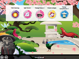 Animated videos introduce each new program level. Students can click characters to hear fun facts about each new location. Within each level, students choose which skills and activities they want to work on, allowing them to be self-directed in their learning.